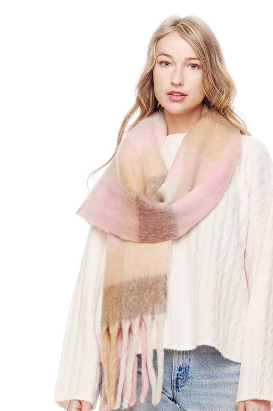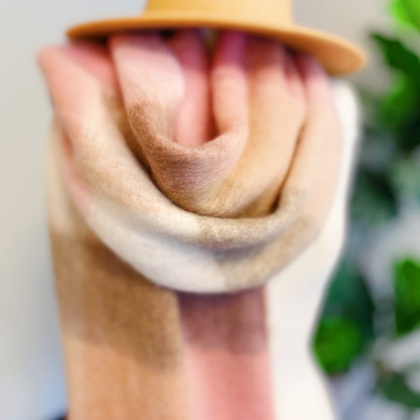 Super cute and cozy scarf in beautiful pink and brown mix of colors. It will totally brighten your day by wearing it!