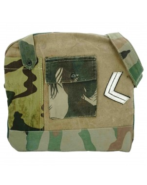 This super cool crossbody/messenger bag is crafted with recycled tent fabric and accented with vintage camoflouge and military stripes. It is fully lined with padded compartment for laptop or tablet. This bag has a zipper top closure. You will find 2 button-closure pockets on the front as well as a zipper pocket on the back the entire length of the bag for plenty of storage! The base of the bag is leather for extra durability and ruggedness. DISCLAIMER: Our recycled military tent bags are a tribute to and a reminder of the sacrifices and contributions of military veterans. Please know that these bags are made from authentic used military tents and are not brand new canvas packaged as recycled tents or tarps. THESE ARE THE REAL DEAL!! As a result, the tent material will show signs of worn-like imperfections which add to its character. Each bag has differences in genuine imperfections, stains, and colors. Your bag will be as unique as each soldier's experience when seeking shelter in these tents whether in the training field or in a combat zone. All Sales are Final.