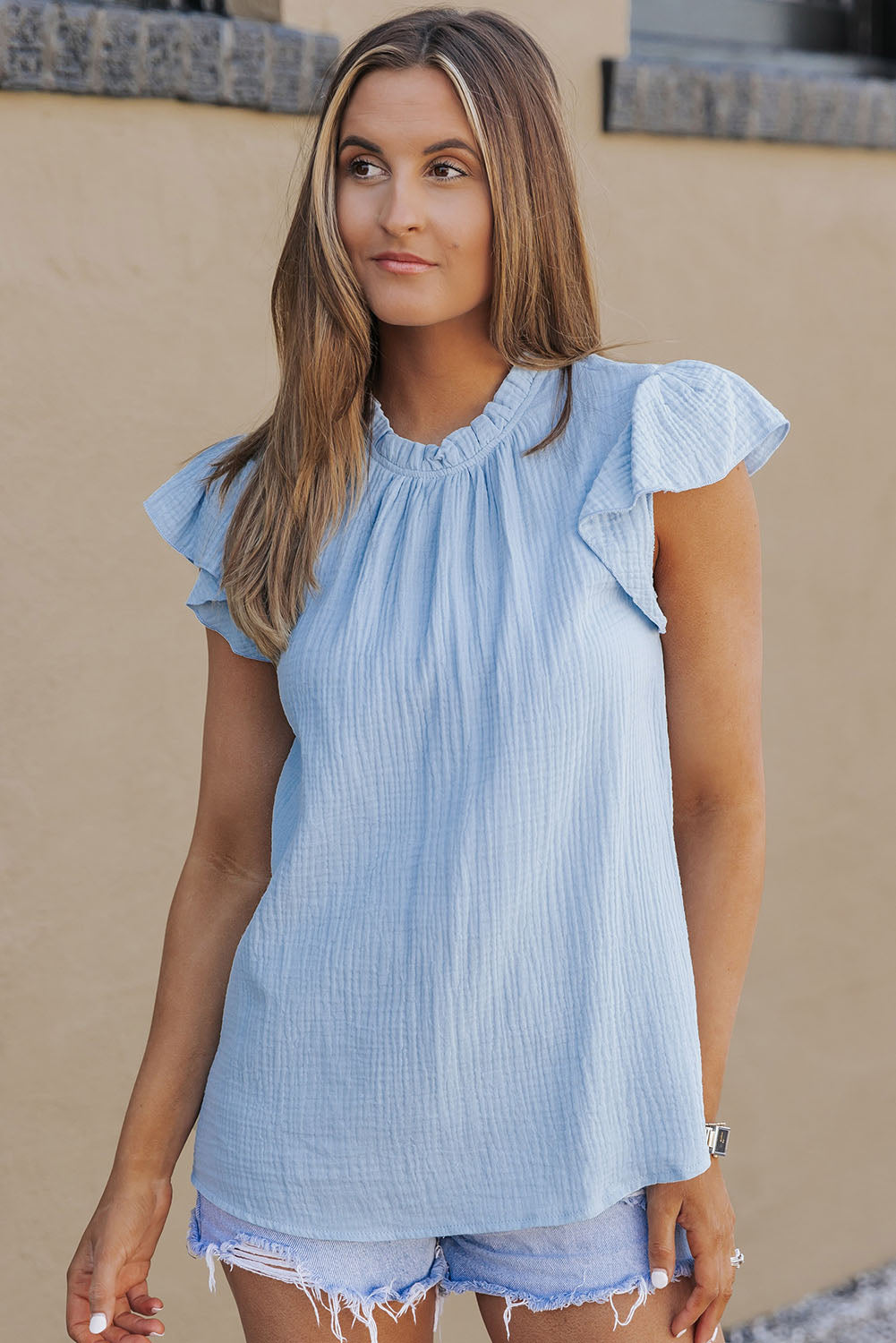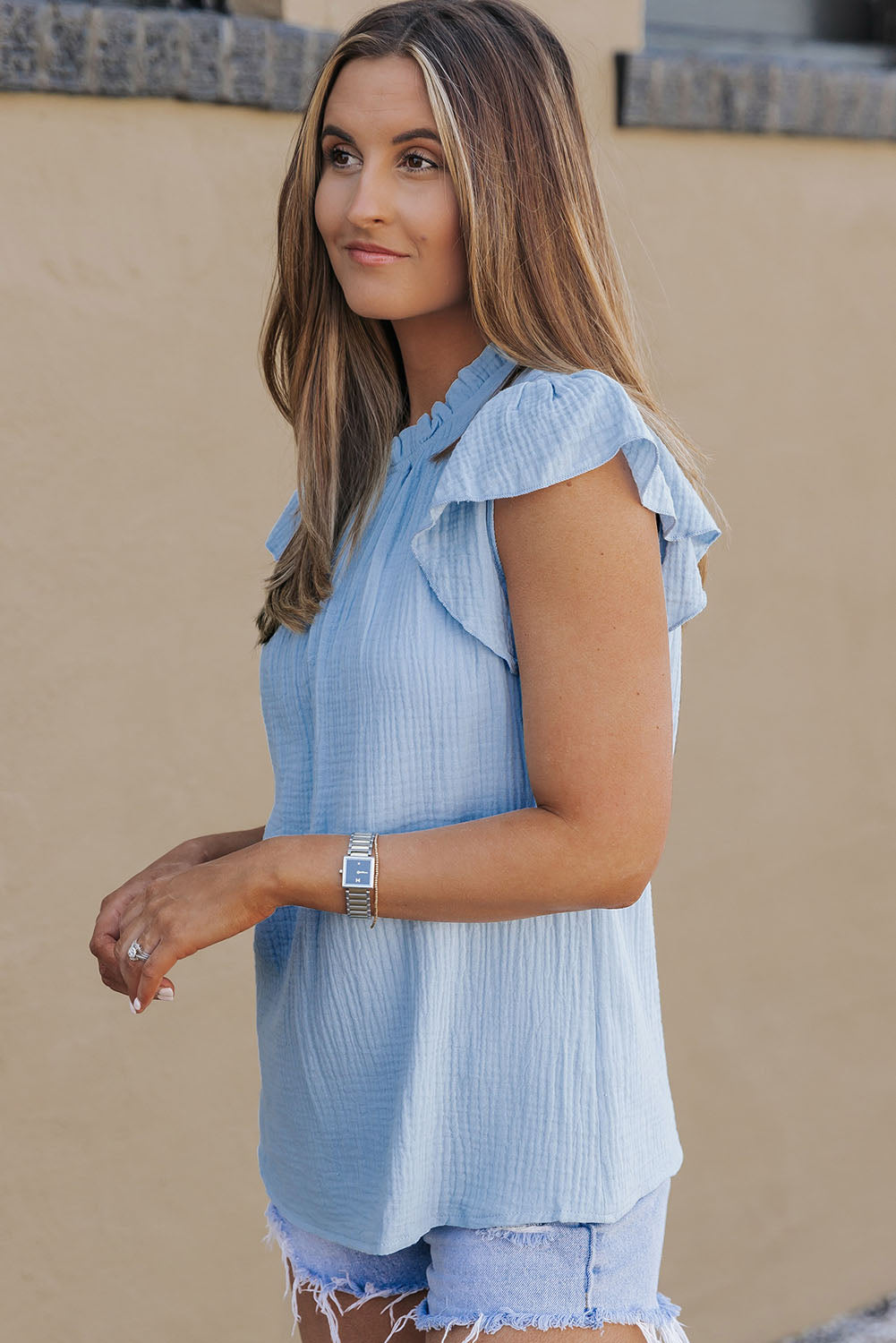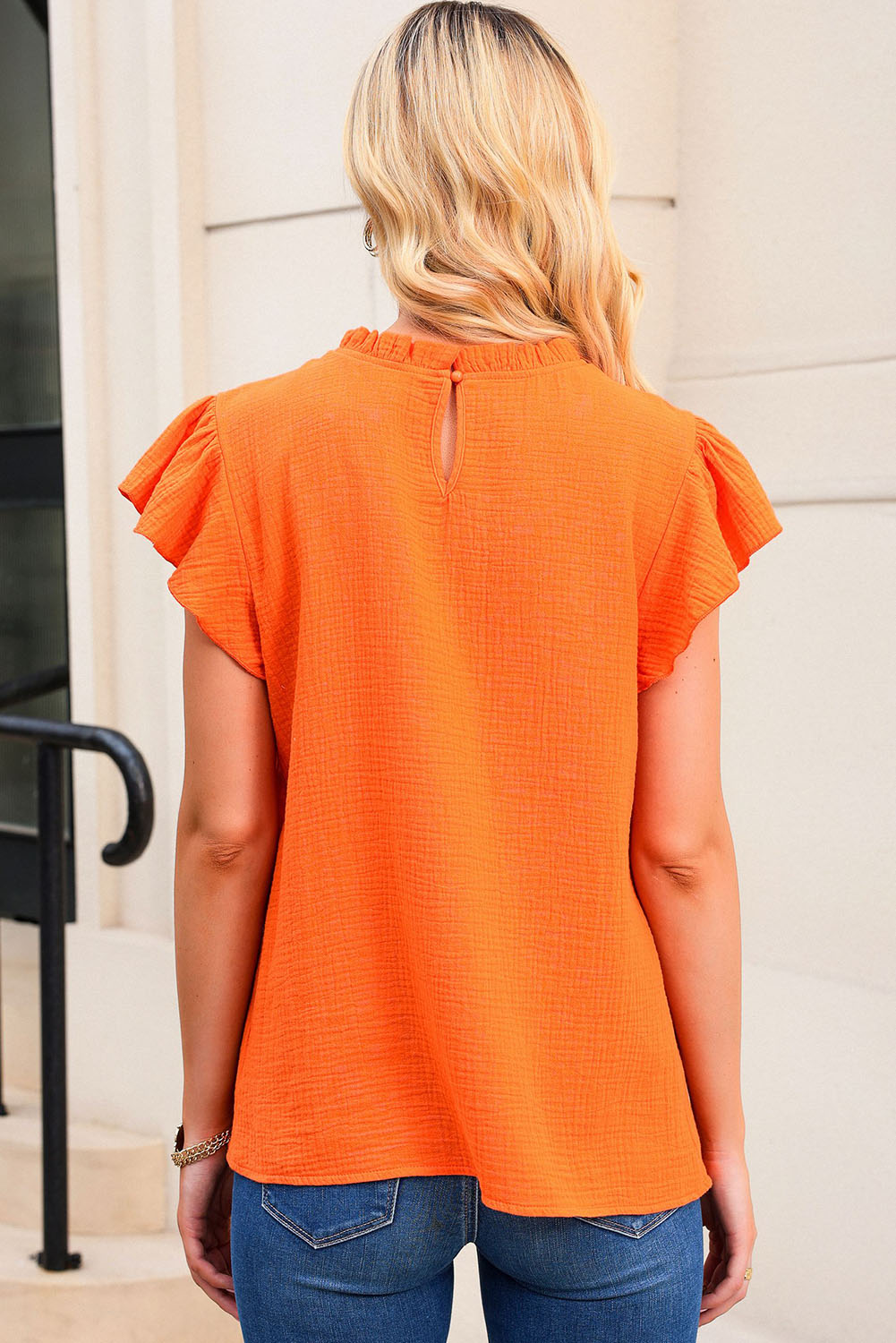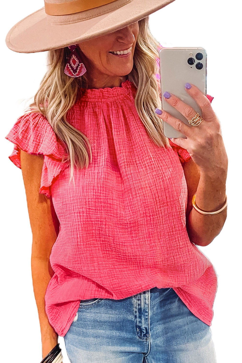 Rose Flutter Sleeve Frilled Neck Textured Blouse