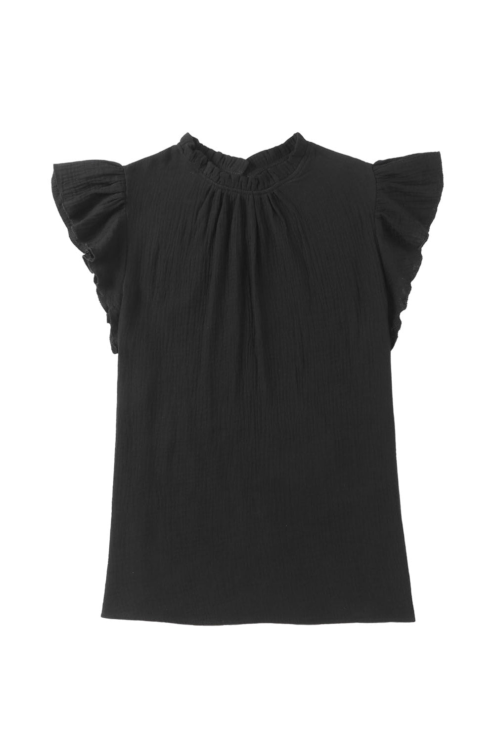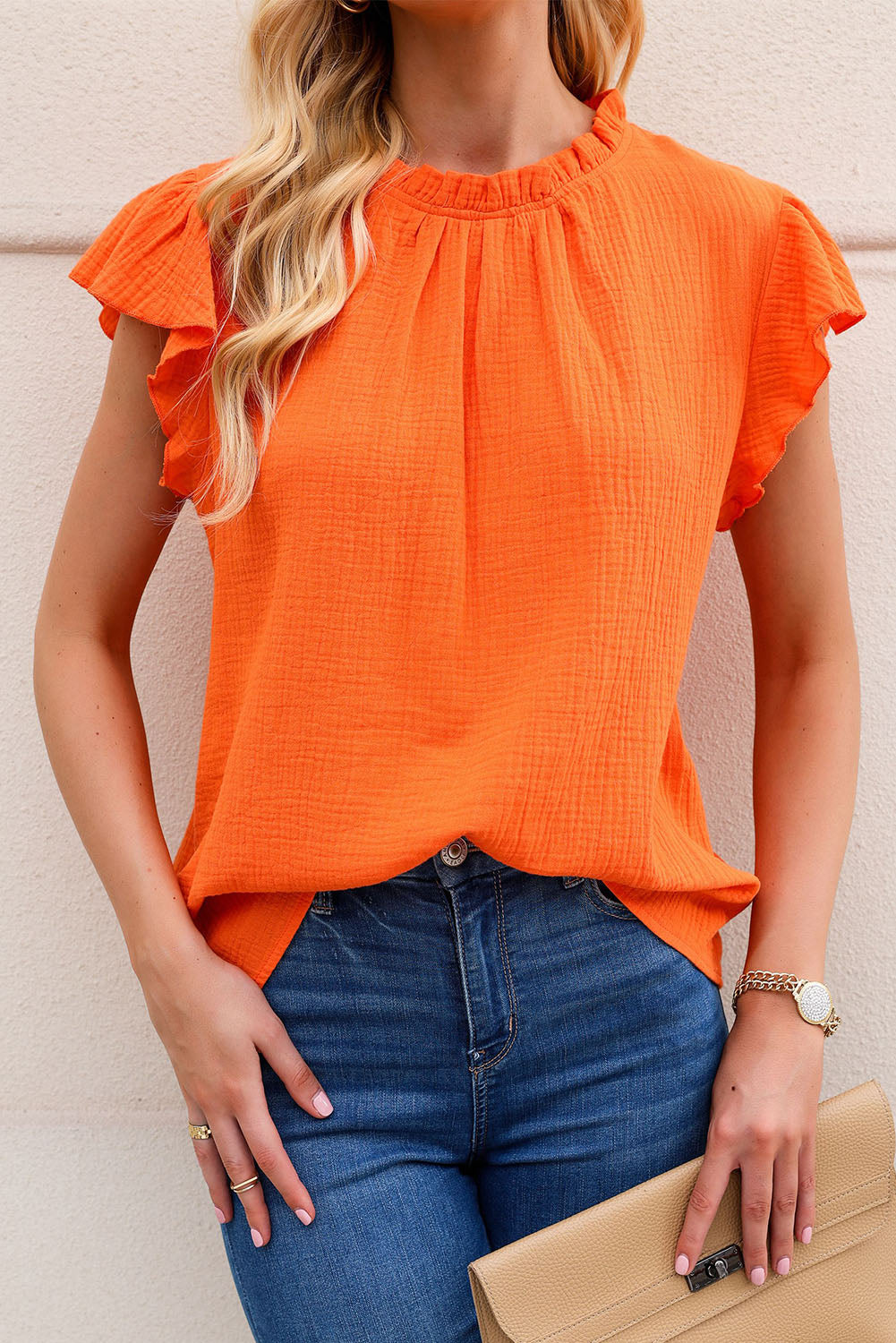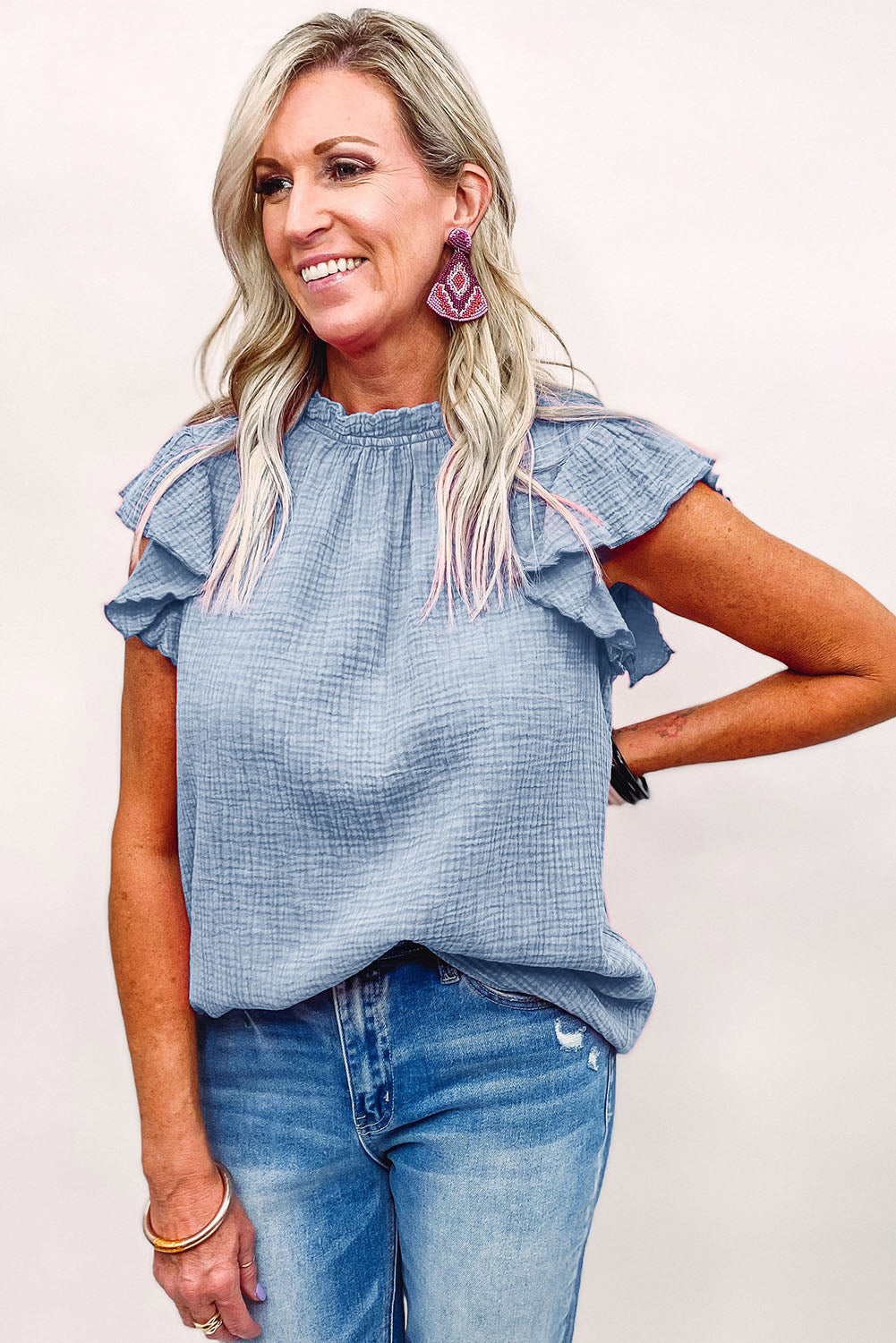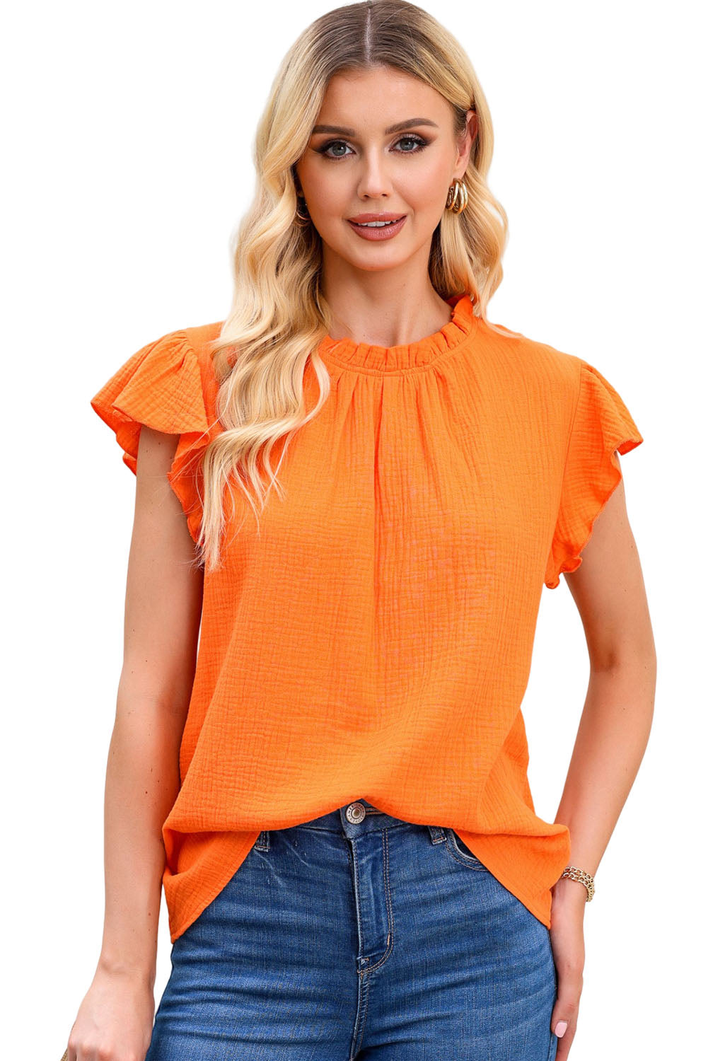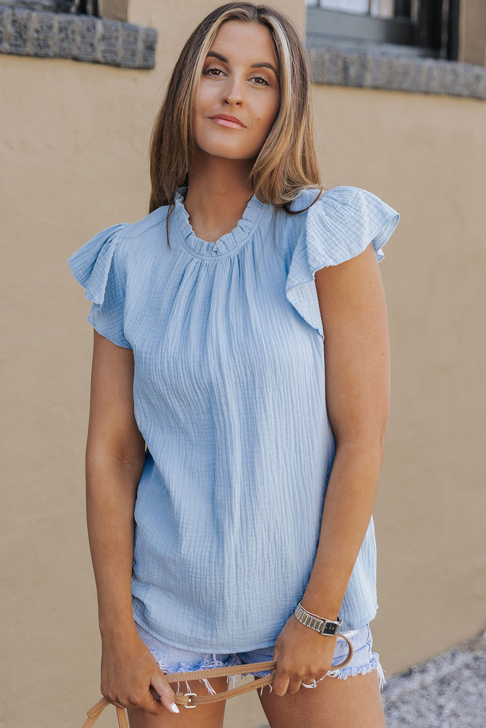 Rose Flutter Sleeve Frilled Neck Textured Blouse