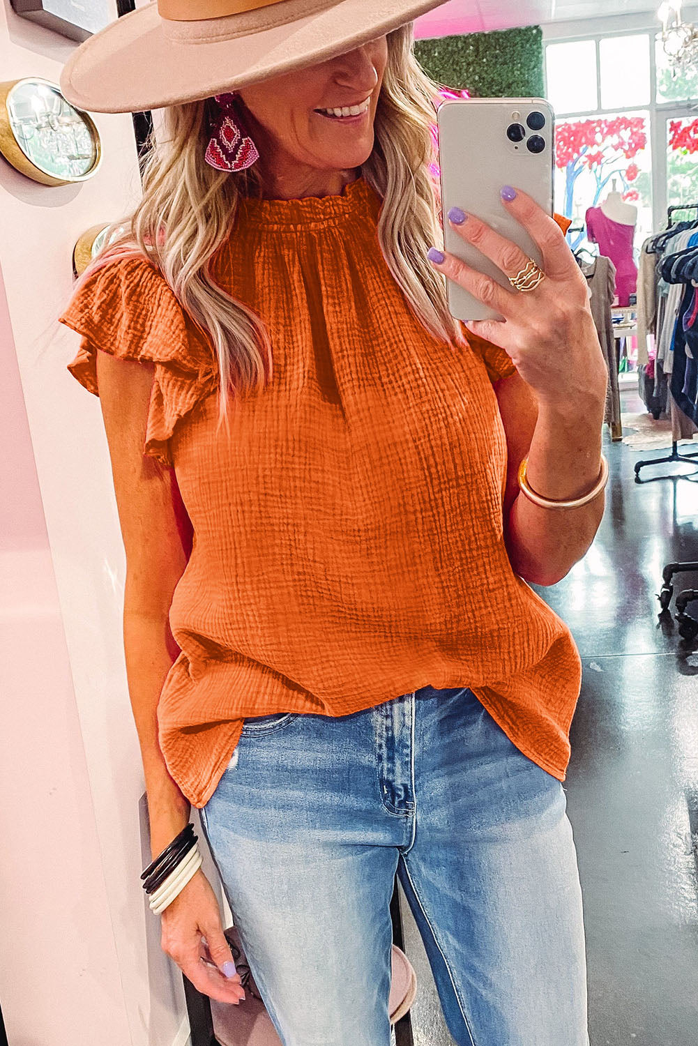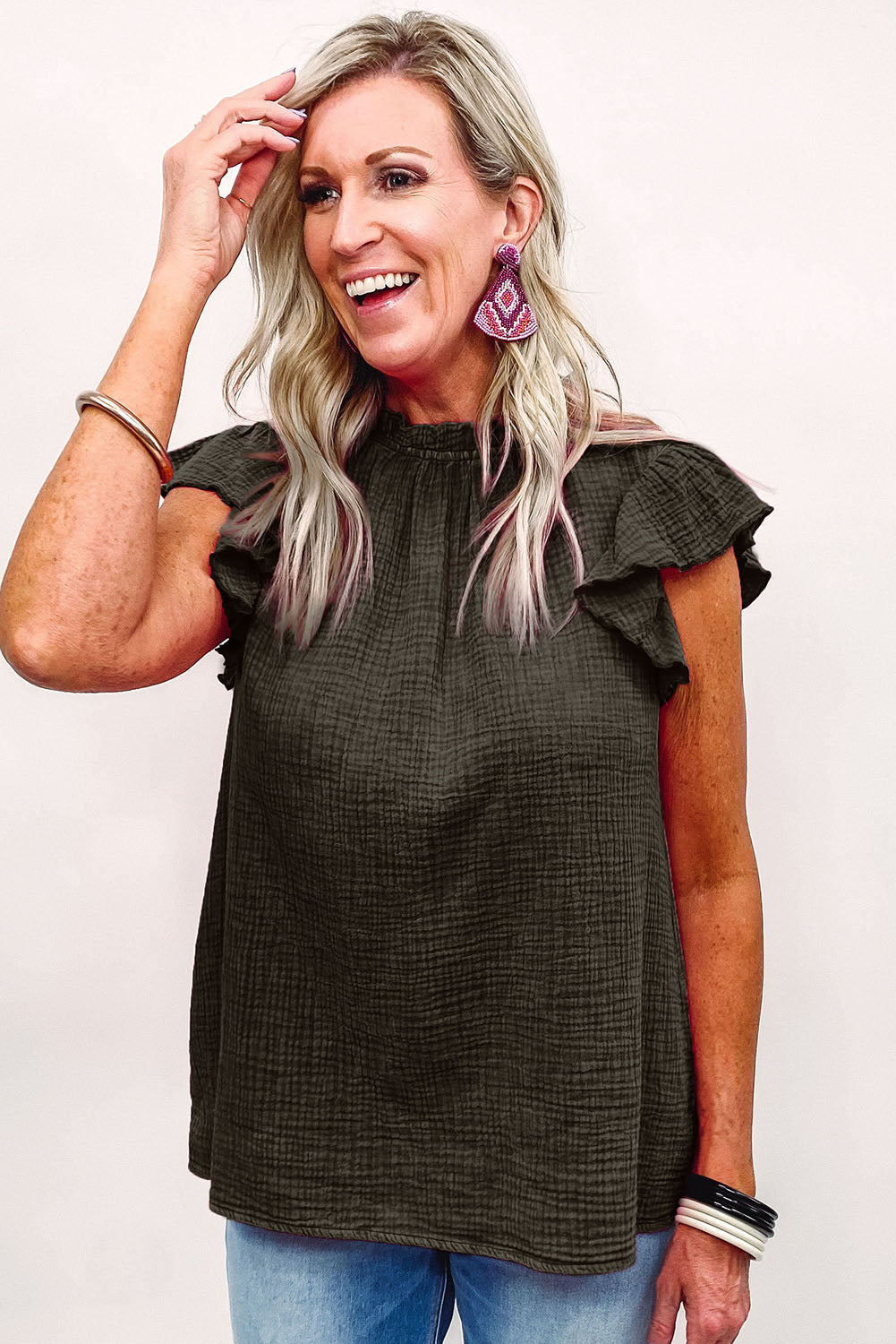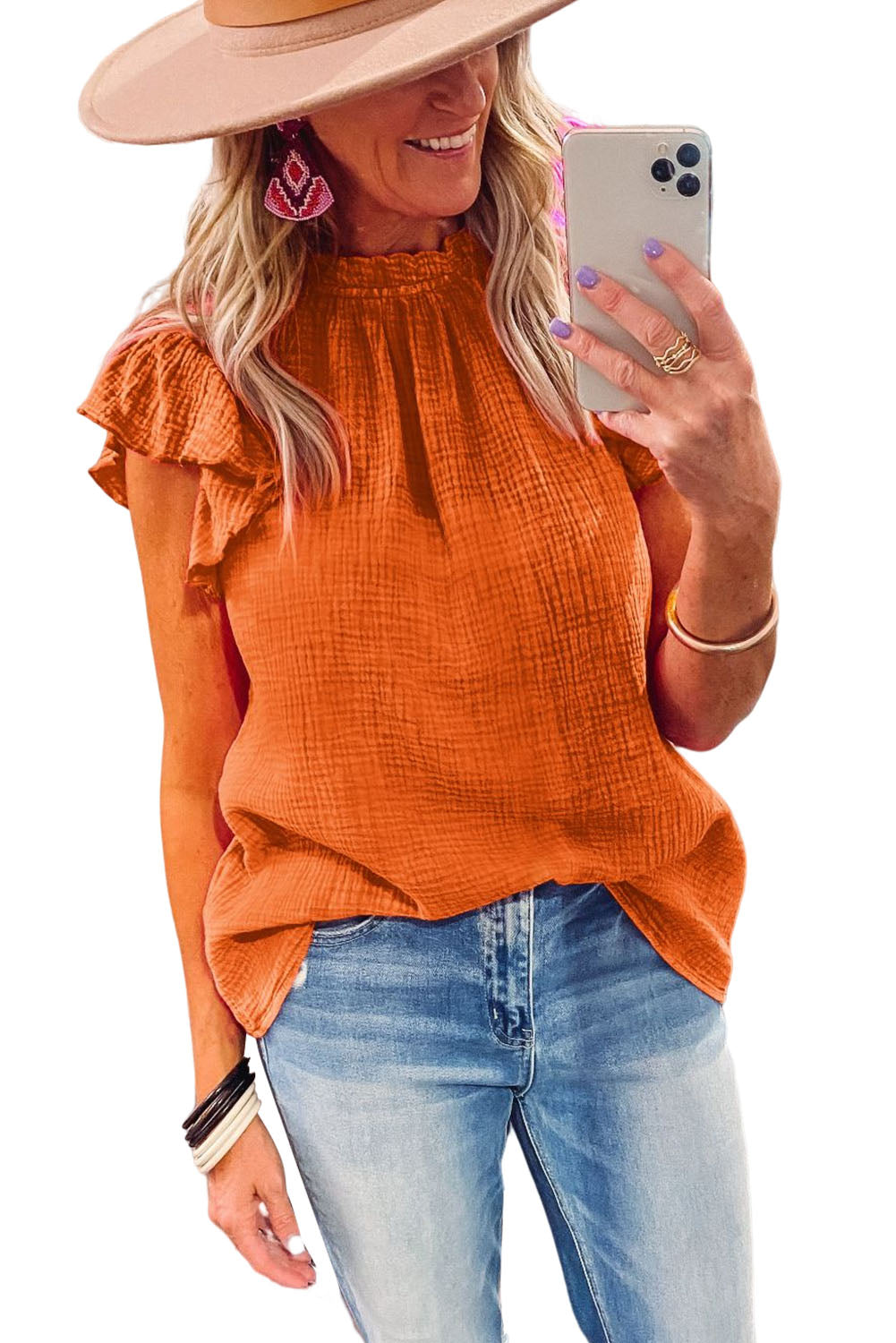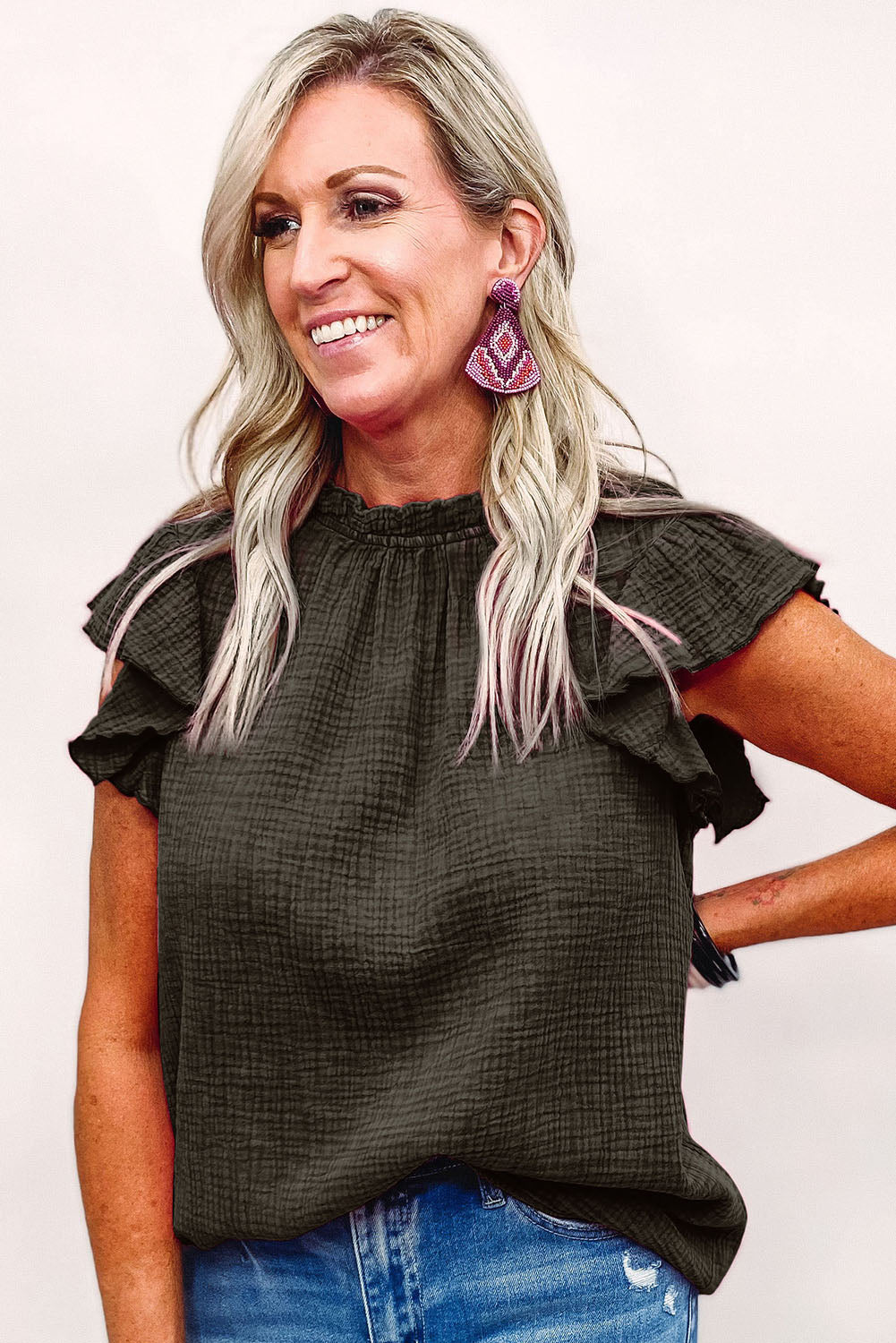Rose Flutter Sleeve Frilled Neck Textured Blouse