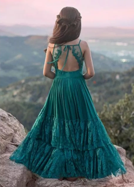 O neck A-line ankle length dress. Sleeveless floral pattern. Cotton polyester lace slight turn around time
